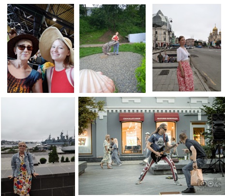На первые впечатления о Владивостоке усталость от перелёта, разумеется, наложила свой отпечаток, чувства притуплены, рецепторы плохо реагируют на раздражители, а посему раздражаются. Когда поднимались от пляжа на верхнюю набережную, мне на собственной шкуре и суставах довелось испытать его разновысокость, ведь город-крепость расположен на сопках. И лишь постепенно я стала влюбляться в этот город – разной архитектуры, разного роста, возраста и рода занятий, разных культур и конфессий – словом, такой РАЗНЫЙ, разнообразный, прекрасный город!