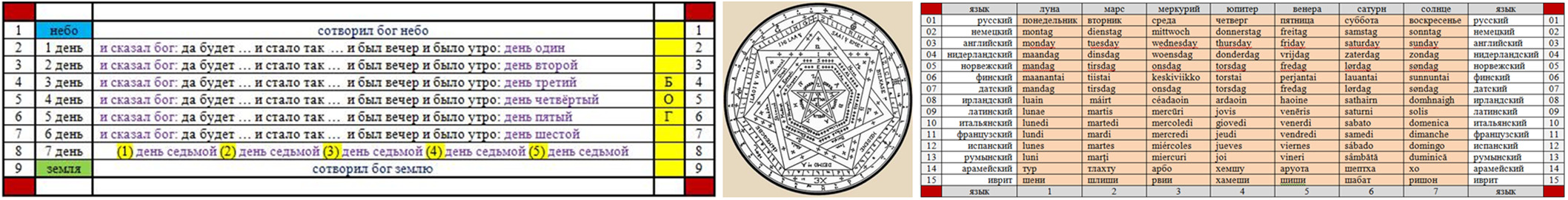 1) «семь дней творения» || счет суток по моисеанской рфс