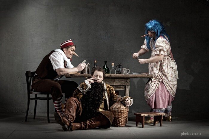 - А Мальвина из Санэпидстанции в это время себя в … под юбку целует, и золотые монетки пересчитывает, которые ей от Трактирщика приносят.