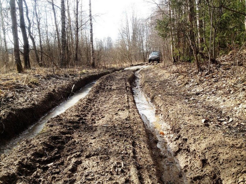 Его по колее под слоем грязи,
