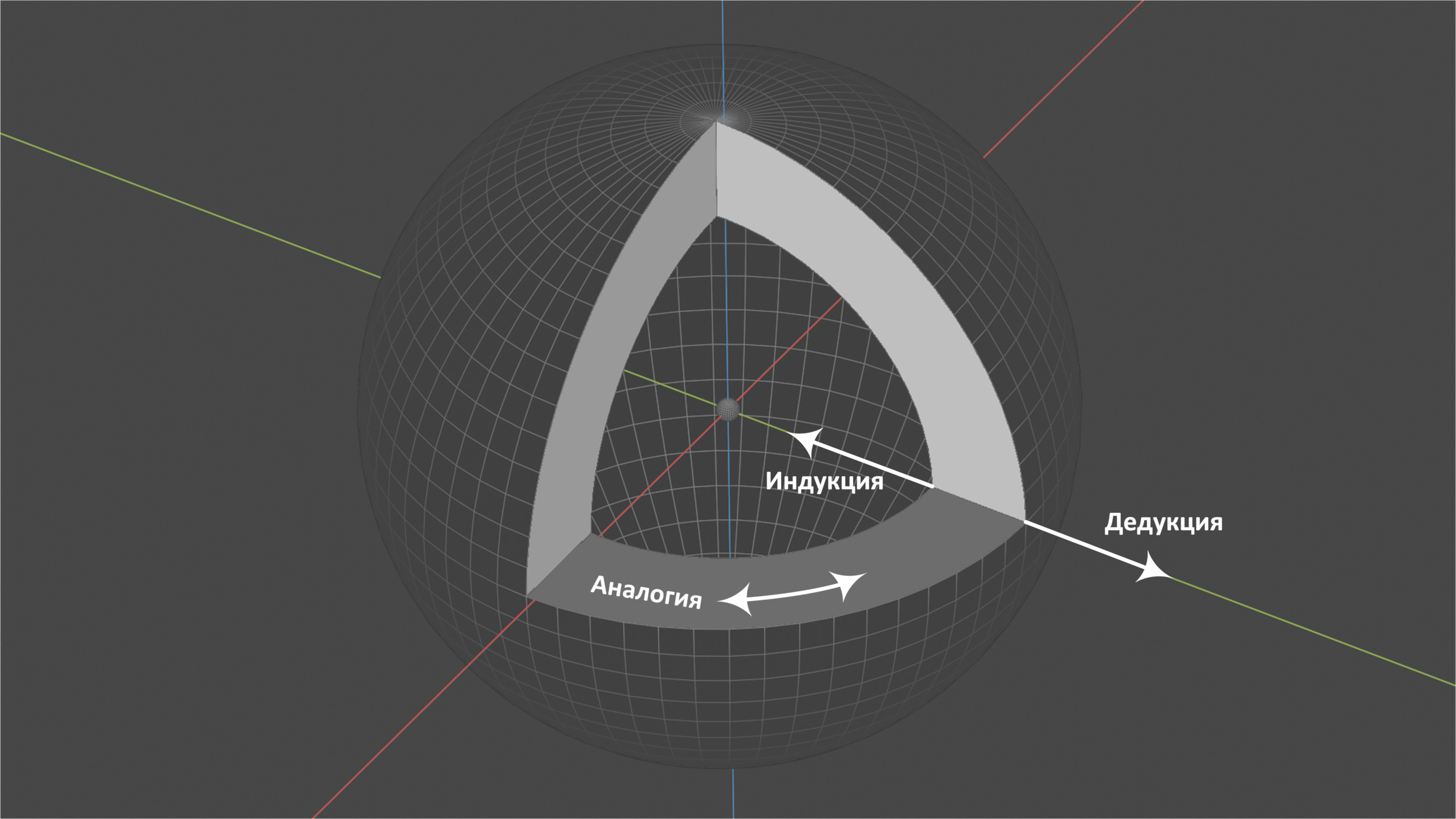 Аналогия связывает знания, разных областей, действуя вдоль концентрических сфер полого шара знаний.