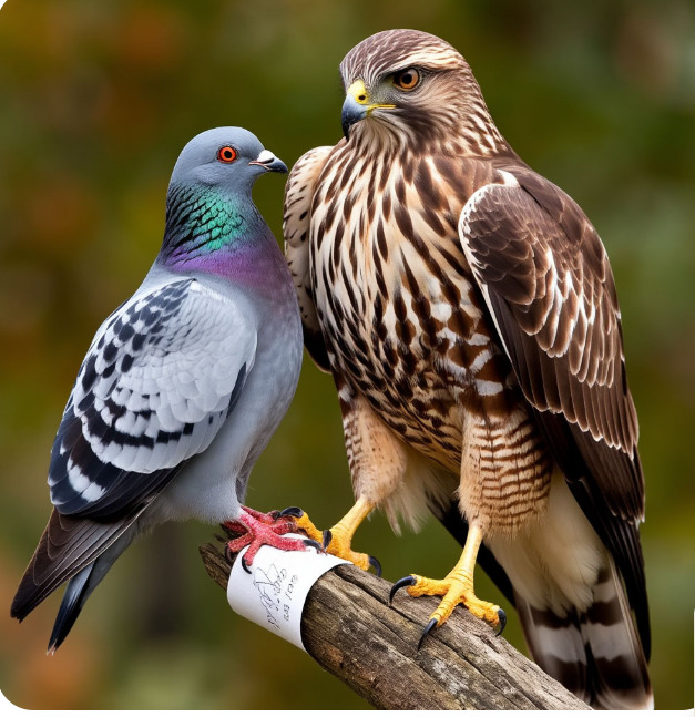 Присмотревшись внимательнее, заметил, что ястреб в когтях что-то держит — голубь!