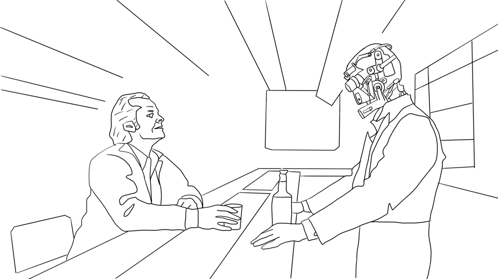 – С больными глазами? Даже и не думай! Пока настроение не исправишь, не отпущу. Слышал, что начальник сказал, свободен! Ты теперь в полном моём распоряжении. Гриша, налей-ка товарищу нашей фирменной, – приказал роботу хозяин «Севастополя». На что бармен мигнул лампочками в глазах и прохрипел механическим голосом: