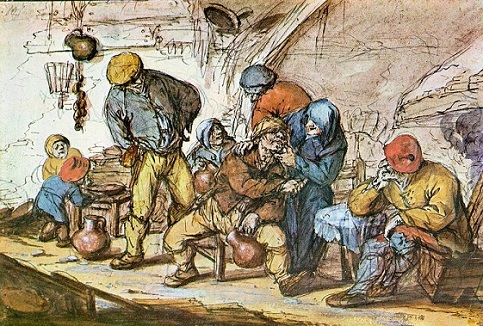 В кабацких фигурах есть магия образа, как сказал бы столетием раньше Адриан ван Остаде. Спящая сила глядела из каждого пьяницы, удаль и беспамятство, хитрость и доверчивость. Издали они походили на выросшие возле столов грибы (валуи?)- говорящие, обладающие небольшой мобильностью, порой даже впадающие в буйность. Их голоса звучали, как водопад в пещере.
