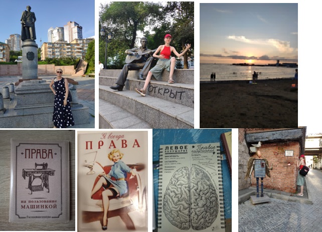 Из театрального сквера спустились на Светланскую, и вот тогда вблизи разглядели статую Элеоноры Прей и доску с написанным ею в одном из писем «Вряд ли кто-то любит это неухоженное место так, как я. Все смеются надо мной, а я ничего не могу с собой поделать. Одна только мысль, что можно жить где-то, где я не буду видеть эту голубую бухту и два залива, приводит меня в ужас». За 36 лет жизни во Владивостоке она написала около 16 тысяч страниц писем, рассказывая о жизни города. «За исключением Парижа, Владивосток в данное время – это, вероятно, самое интересное место на свете. Какие же мы счастливчики, вокруг нас столько интересного!» - написала она в одном из писем. На счёт Парижа не знаю, а с последним трудно не согласиться.