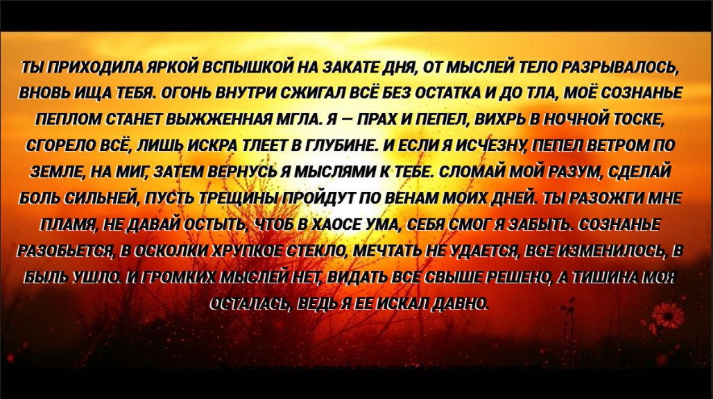 Это о прозрении. О человеке, который впервые услышал собственную Тишину. О том, как одно лицо, одно имя, одно дыхание, может открыть в человеке целый храм света и боли. Она была дана ему не для обладания, а для узнавания. Она стала зеркалом, в котором он увидел свою душу, увидел — и не смог отвести взгляд.