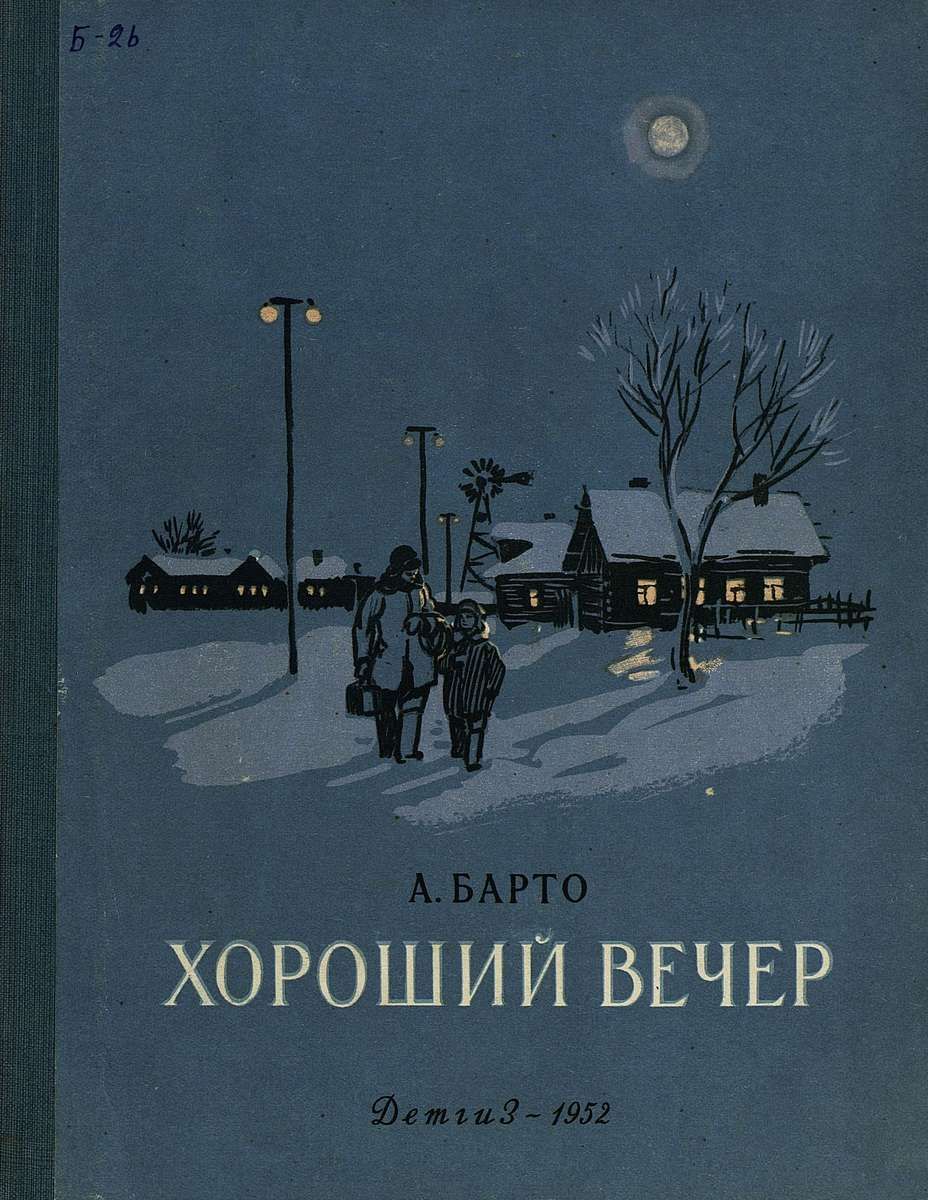 Отличный рисунок на форзаце, в духе 62го и раннее годов выпуска – классический библиотечный форзац, из ткани и картона: А. Барто «Хороший Вечер»