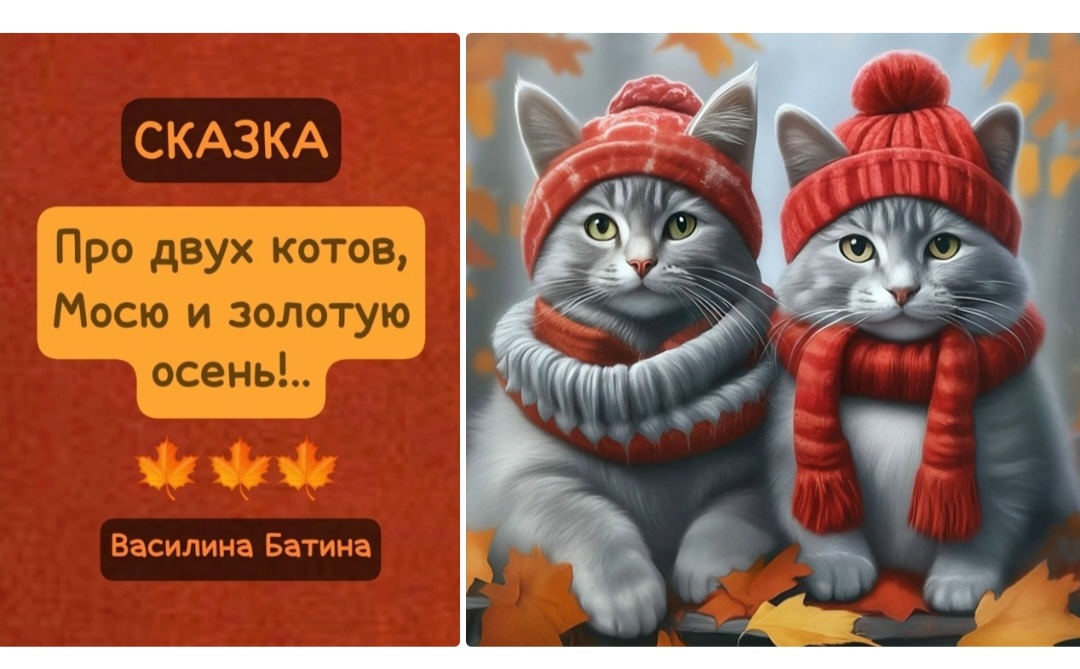 Что же это деется на свете? Листики срывает с веток ветер, и они, как мышки, шелестят и летят, летят, летят, летят... Два кота сидели на скамейке на мохнатой старой телогрейке. Наступила осень на дворе, котики печалились поре. Как обои, дерево ободрано, а листва злой дворничихой собрана. Появились возле клена кучи, с каждым днем темнее в небе тучи. Почему испортилась погода? Котикам исполнилось два года — это их была вторая осень. А хозяйку дома звали Фрося, с ней они и жили, не тужили, на веревочке карасиков сушили. А теперь настала эта осень: из квартиры не выходит Мося, кошка из соседнего подъезда. Говорят, она на море ездила. Привезла оттуда три ракушки, носит их на шее — погремушки.