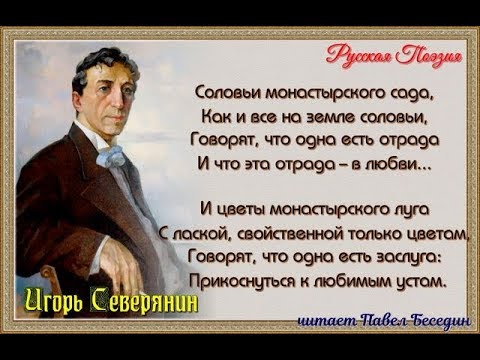 К безусловно прекрасному стихотворению Игоря Северянина не хватает названия. Посмотрите какое серенькое, ничего особо не значащего поставлено; "Все они говорят об одном...". Понятно, оно несет свою смысловую нагрузку, объединяя все в любви. Но нам в названии нужен образ, нужен аккорд, а здесь что?.. Заурядное предложение, которые объясняет нам какую-то деталь. А между тем название лежит тут же, это название сразу заставляет запеть стихотворение, сразу настраивает нас на поэтический лад, сразу нас захватывает. И это название, на мой взгляд, должно быть таким: "Соловьи монастырского сада".