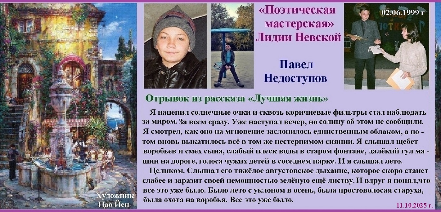 Я нацепил солнечные очки и сквозь коричневые фильтры стал наблюдать за миром. За всем сразу. Уже наступал вечер, но солнцу об этом не сообщили. Я смотрел, как оно на мгновение заслонилось единственным облаком, а потом вновь выкатилось всё в том же нестерпимом сиянии. Я слышал щебет воробьев и смех сына, слабый плеск воды в старом фонтане, далёкий гул машин на дороге, голоса чужих детей в соседнем парке. И я слышал лето. Целиком. Слышал его тяжёлое августовское дыхание, которое скоро станет слабее и заразит своей немощностью зелёную ещё листву. И вдруг я понял, что все это уже было. Было лето с уклоном в осень, была простоволосая старуха, была охота на воробья. Все это уже было.