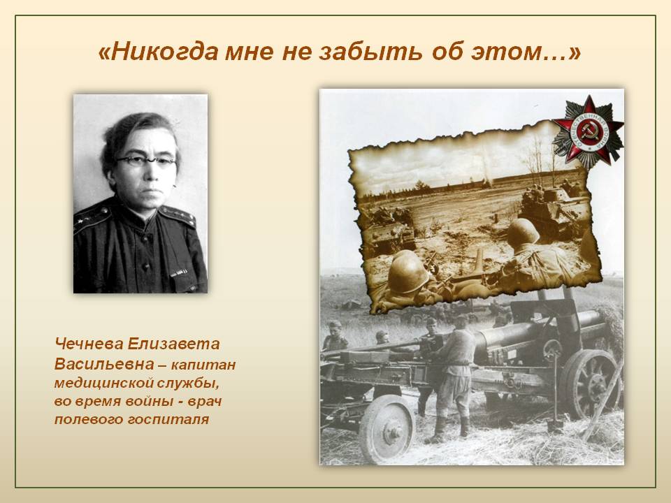 Будучи врачом, она мало заботилась о своём здоровье. Семьи у неё не было, и всё время она уделяла своим пациентам, забывая о себе. Да и прошедшая война через много лет дала о себе знать: у неё началась гангрена. И я регулярно приходила к тёте Лизе, чтобы сделать уборку, сходить за продуктами, просто поговорить с ней по душам.