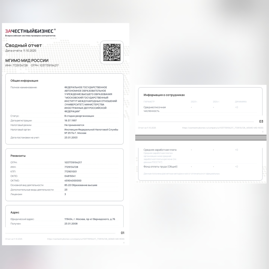 Нарушения ФЗ в институте МИД России, Ч. 1