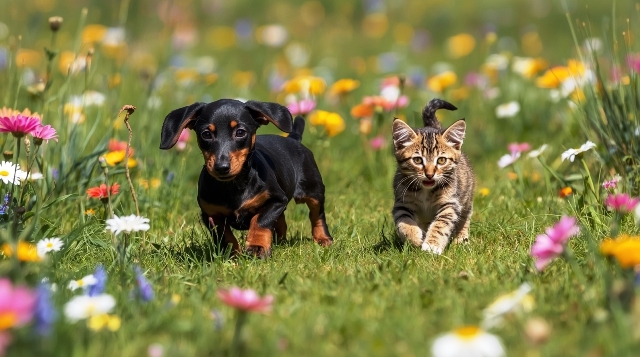 Солнце стояло высоко, и луг звенел от жужжания и стрекота. Дружок прыгал по траве, стараясь догнать свой хвост, а Васечка внимательно рассматривал каждый стебелёк — ему нравилось находить маленькие тайны большого мира.