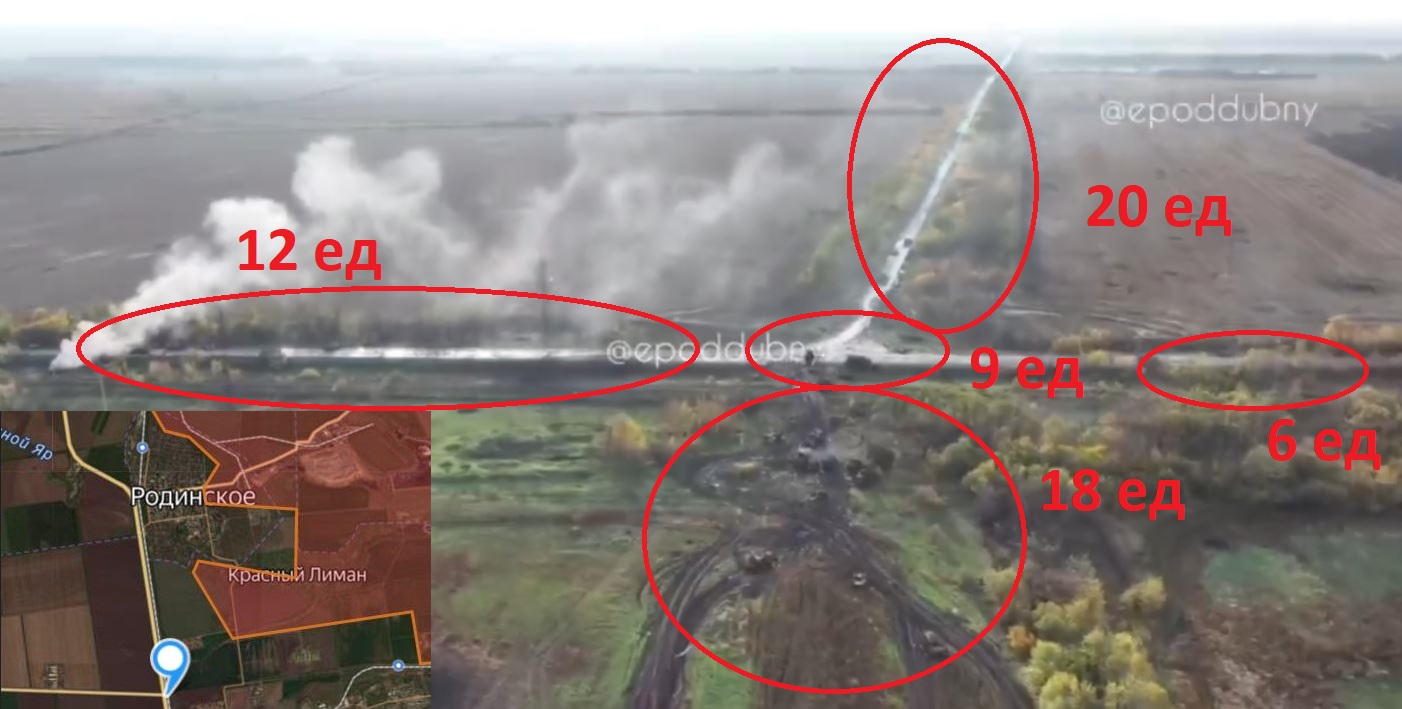 Вся абсолютно техника украинская и вся поражена дронами за пределами ЛСБ, то есть не вступая в контакт с противником. Таких вот перекрестков сейчас на ЛБС десятки.