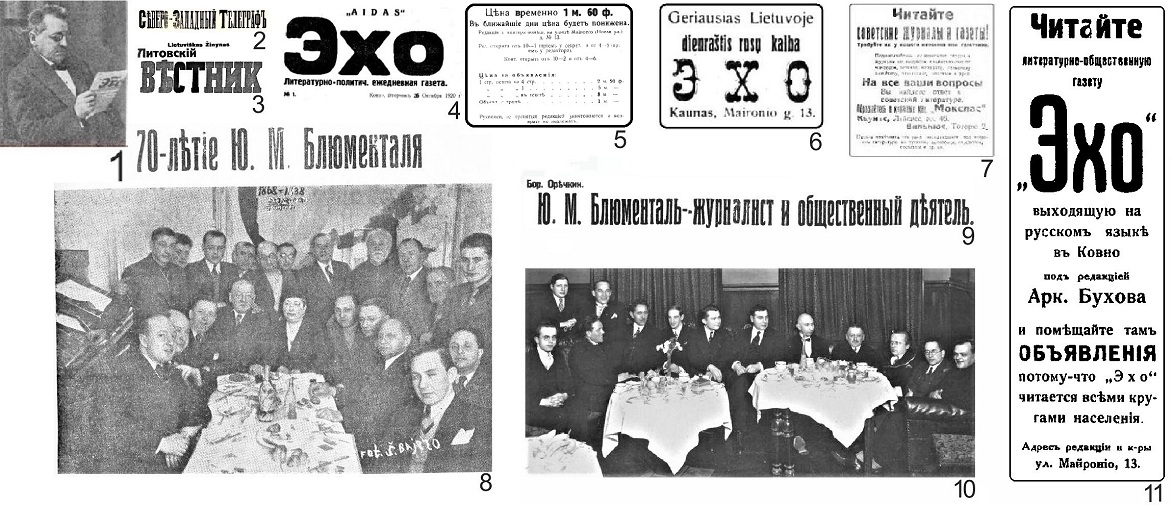 9. Заголовок статьи Бориса Оречкина «Ю. М. Блюменталь – журналист и общественный деятель» в газете «Литовский вестник» 22 декабря 1935 г. к 30 лет деятельности Ю. Блюменталя на редакторском поприще.