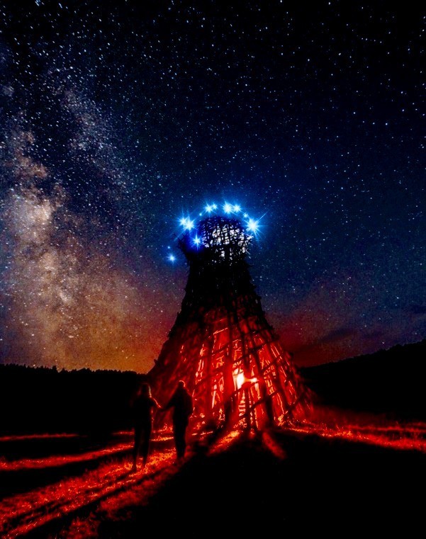 арт-объект в этом месте «Маяк на Угре»,художника и организатора проекта Николая Полисского, создан без единого гвоздя,