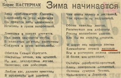 Но вернемся к возвратной эволюции. В двадцатом веке устоялась "метель". Но взбунтовался Пастернак. На то он и великий, чтобы нарушать правила.