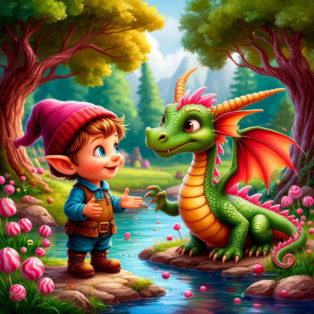 Ветер свистел в ушах, облака расступались, а карамельные горы внизу переливались всеми цветами радуги. Гномик смеялся, как ребёнок, — от восторга, от страха, от счастья.