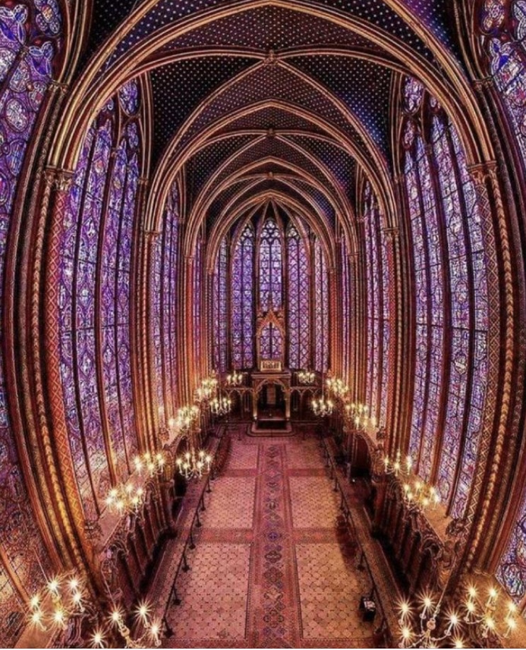 Сент-Шапель ошеломляет посетителей, когда они посещают верхнюю часовню, состоящую из 15 стеклянных стен. Витражи второго яруса достигают 15 м в высоту, а их общая площадь равняется 600 кв. м. Если вы их будете разглядывать, то поймете, что перед вами иллюстрации Ветхого и Нового заветов.