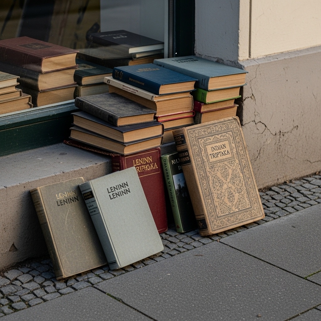 Сегодня выходной, магазины не работают. Однако возле (бывшего) книжного магазина на Либкнехта, прямо у окошка, разложены бесплатные книги – бери не хочу. В основном все интересное уже разобрали, остались серые запыленные тома с трудами Ленина. Я нахожу среди этой массы похожий по формату том старой индийской Трипитаки, забираю. Прохожу через здание университета, несу три книги, объясняю: это мои книги, только одна чужая. Меня начинает преследовать БВ – хулиган, знакомый со школы. Ускоряю шаг, пересекаю сквер по диагонали.