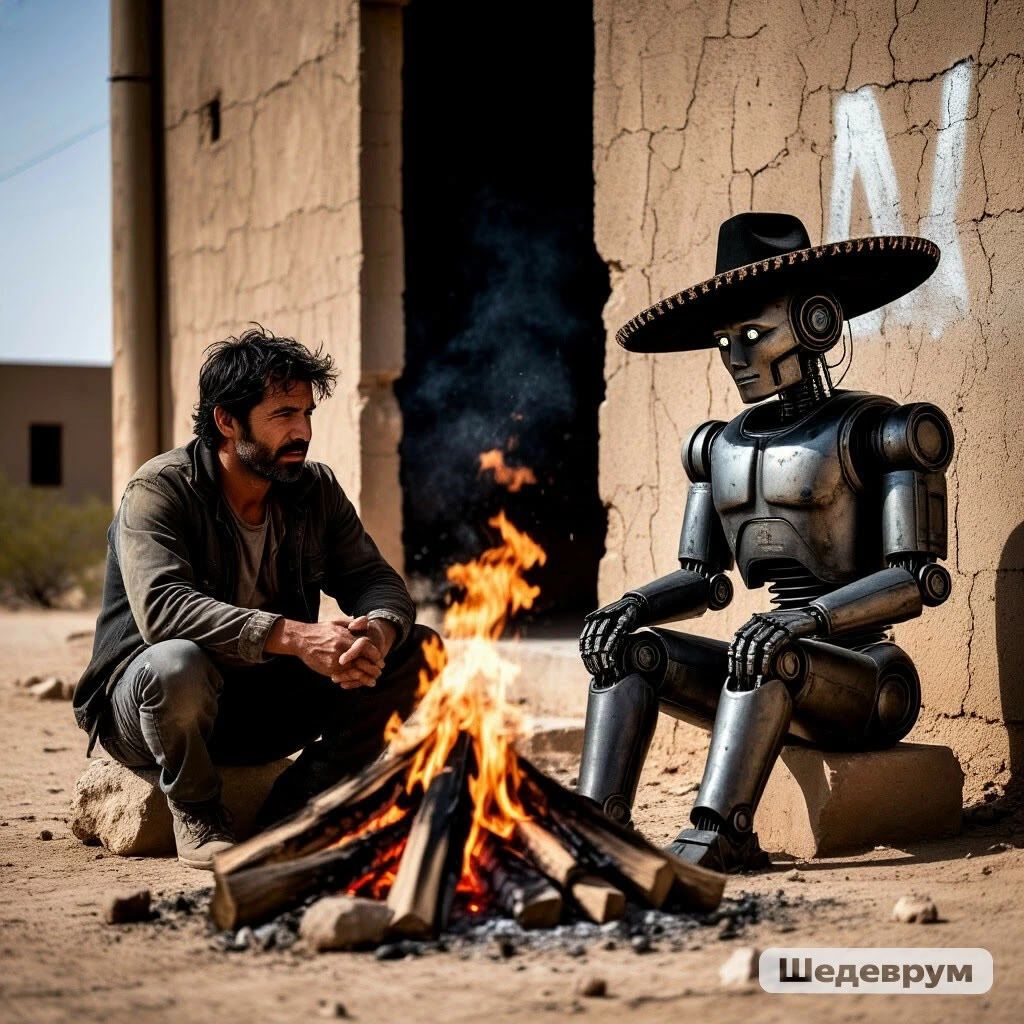 — Я соврал, чтобы ты от меня отстал, — мужчина встал, отряхнул потрепанные штаны и пересел ближе к костру. — Как под скрежет твоего голоса можно уснуть. Историю нашего знакомства я и без тебя знаю. Они запустили бомбу, убивающую все живое, мы бомбу, которая вырубила все технологии. Мы с тобой были в таком глубоком бункере, что походу только мы и выжили, — мужчина посмотрел на робота. — Если к тебе можно применить этот термин.