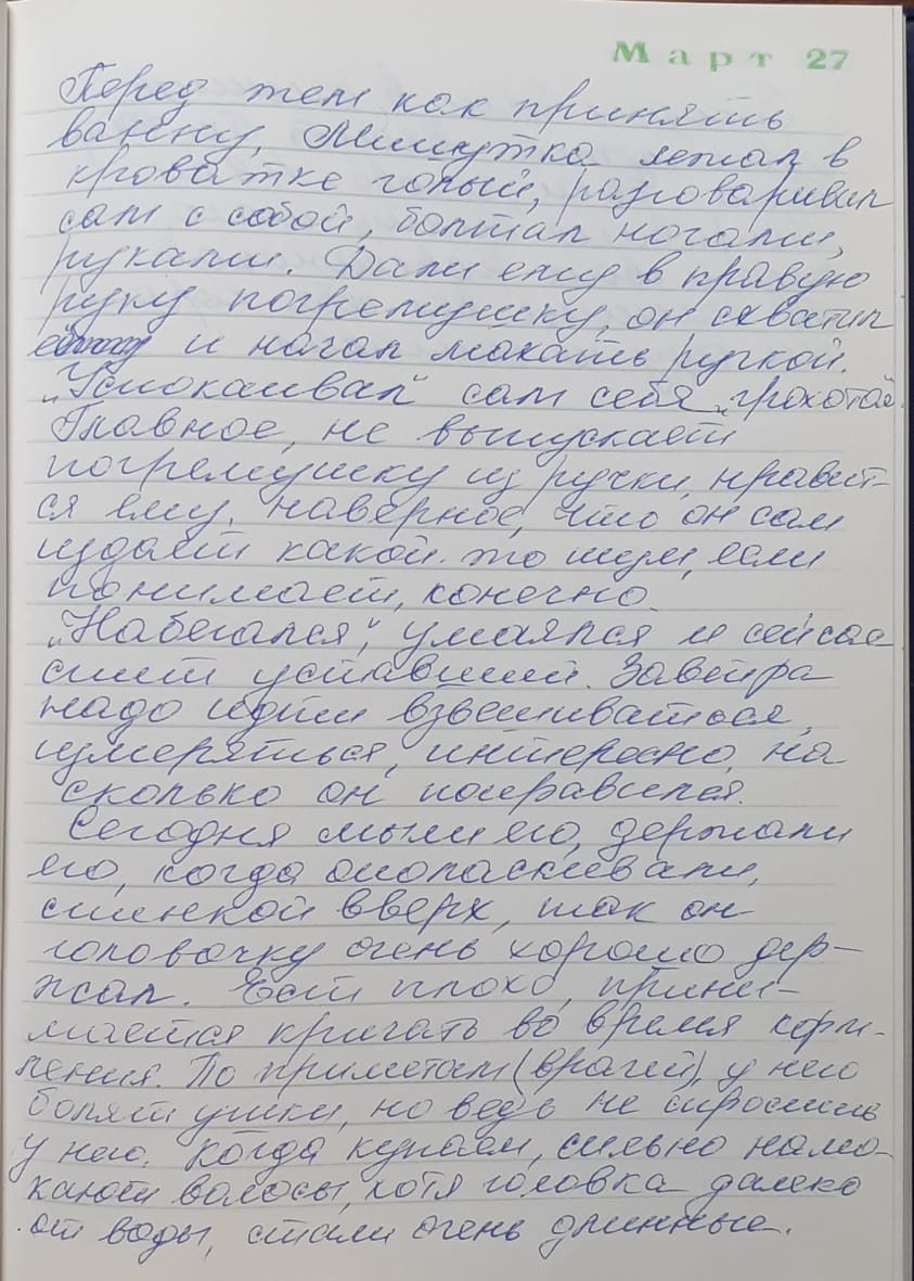 Сегодня мыли его, держали его, когда ополаскивали, спинкой вверх, так он головочку очень хорошо держал.