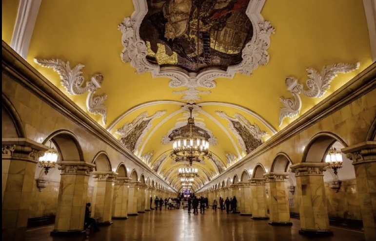 Лучшее в мире метро имело различные архитектурные стили. Например станции метро « Комсомольская», открытая в 1952 году. Великолепное барокко, отсылающее к витиеватому орнаменту XVIII века.