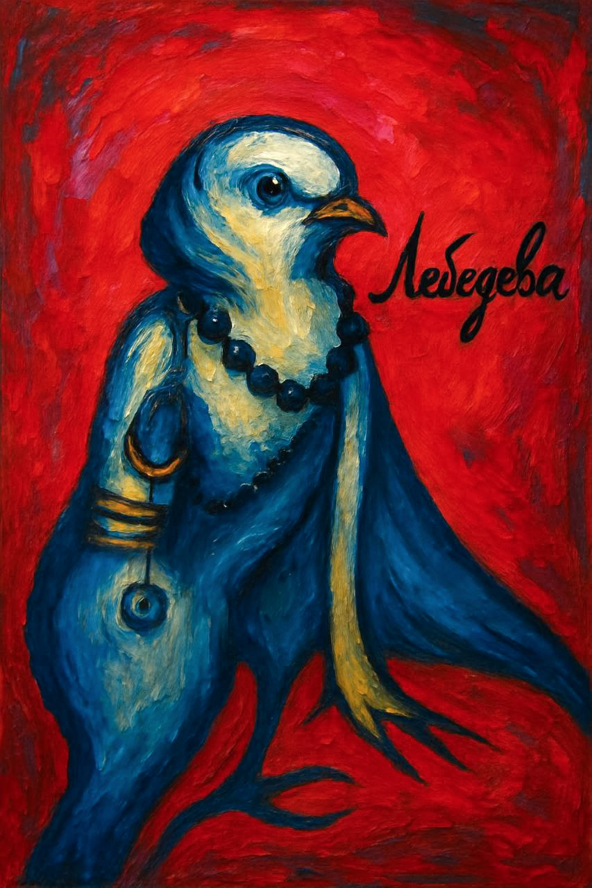 Птица с ожерельем из крупных бусин холодного синего цвета на ярко-красном фоне - такой контраст создаёт ощущение мистичности и глубины. Её перья шепчут древние истории забытых таинств, она хранит эти сказания бережно в глубине своего леденящего взгляда. Синяя птица приносит с собой вдохновение и творчество, она - предвестник озарения