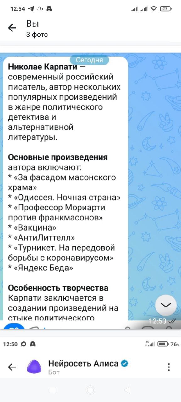 Сообщение нейросети бота Алиса из национального мессенджера МАХ