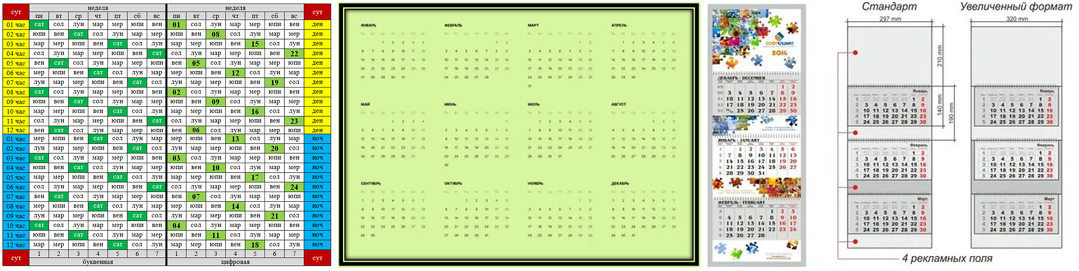 5) календарь настенный = используется месячно-квартальная сетка как календарный плакат
