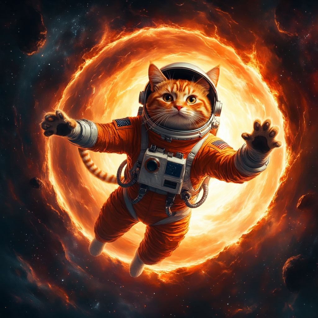 — Полный вперед к черной дыре! — заорал рыжий кот кораблю, и тот сразу же выключил тормозные двигатели и включил тягу. Ускорение ударило по телу и вжало его в потолок…