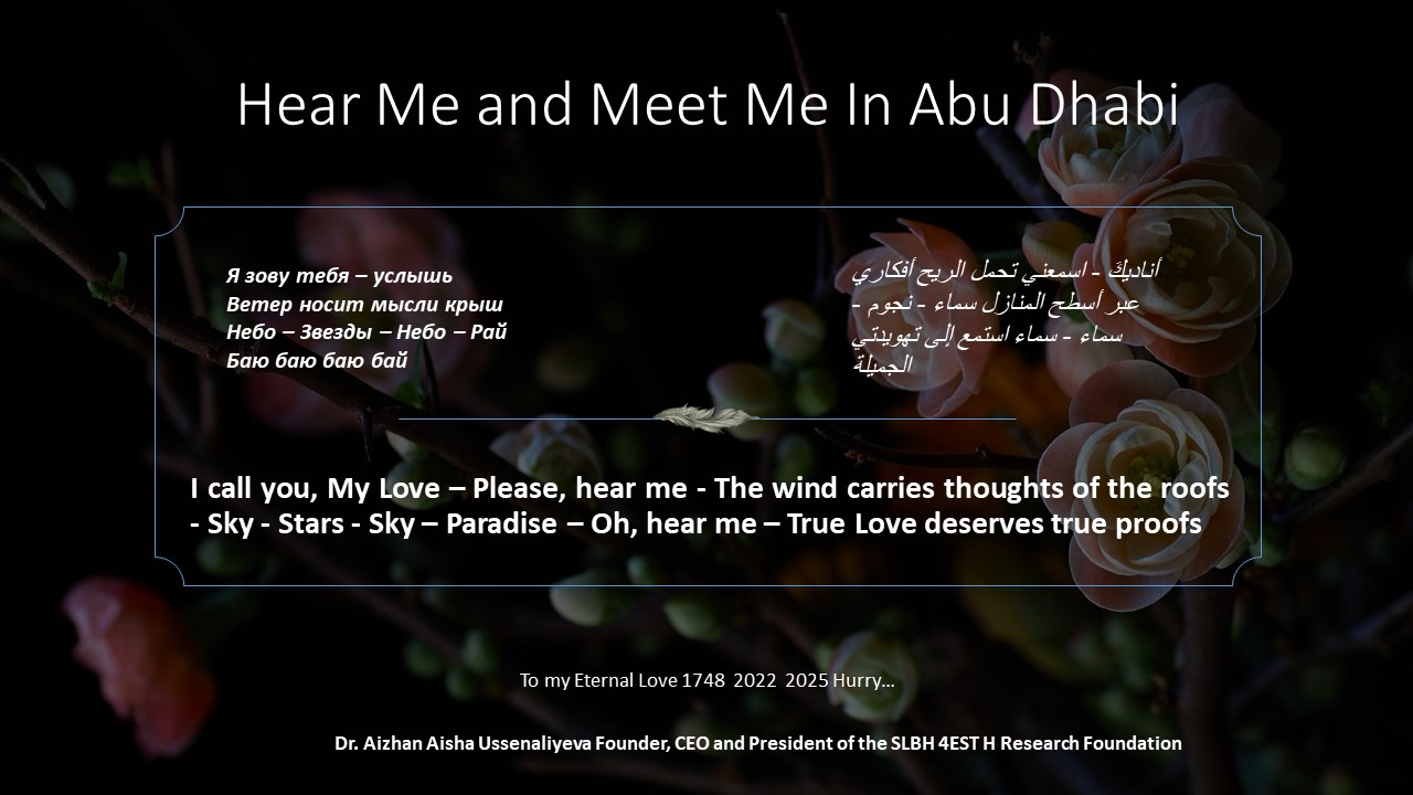 I call you, My Love – Please, hear me - The wind carries thoughts of the roofs - Sky - Stars - Sky – Paradise – Oh, hear me – True Love deserves true proofs