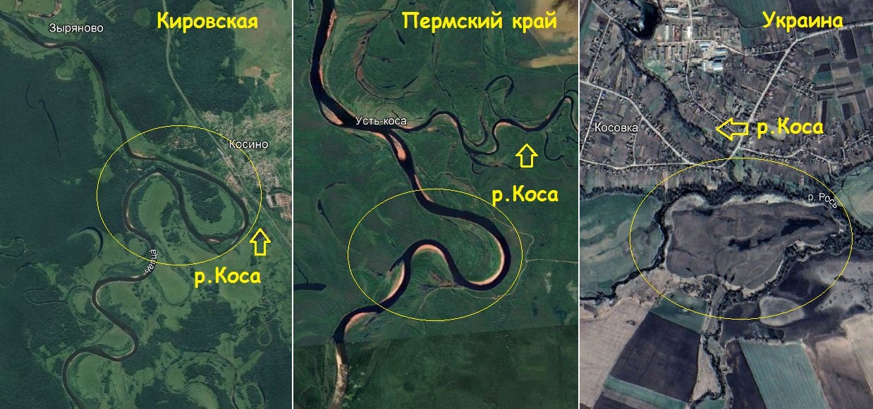 Таким образом, в гидронимах слово "коса" это не только песчаная, вытянутая отмель, но и более масштабные характерные излучины. Можно добавить, что есть варианты названий "коса", как "кса", с выпавшей буквой "о". Например реки Вёкса(Векса, Векша), Аксай http://proza.ru/2025/08/14/73, которые означают буквально "слоновий хобот"(слоновий нос).