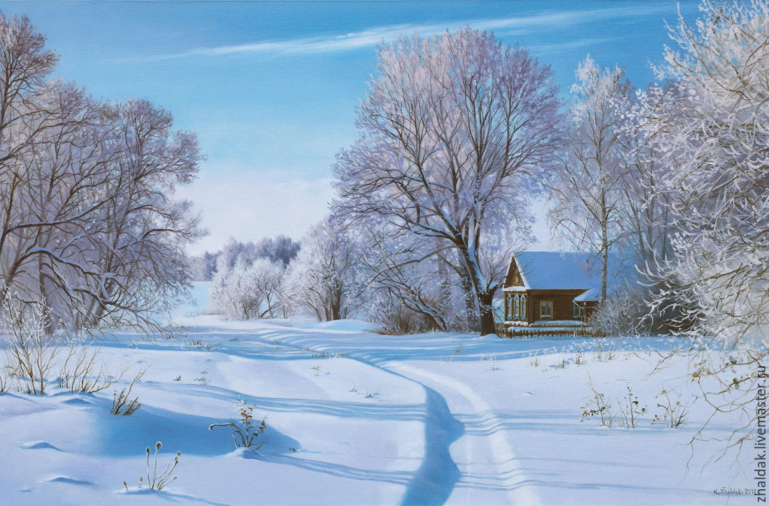 И очертания всех гор ты стёрла ластиком своим. Из труб струится низко дым. И атмосферное давление упало -в зоне риска. Уныло настроение-зима уж близко. И утром иней на траве, как по мозаике листве, что беспорядочно вокруг замёрзла вдруг,- узором колким проявился. И белый снег уже, роился, шёл неустанно- нынче рано. И скрылся вид унылый под белой пеленой ,и воздух стылый накрыл волной пространство света-зимы победа ликовать. И власть Мороза, его стать во всей красе. В снегу деревья все в лесу дремучем и волшебном. И воздух хладный ,но целебный струился паром в лесу забытом старом. В воспоминаниях, как в сказке, остались ярки краски и позолоты желтизна. Ель, пихта и сосна остались неизменны зелёны совершенно, не тронуты дыханием осенним. И на снегу их веток тени-голубезной сочатся. А тучи в небе мчатся, гонимые ветрами, над белыми полями, над мрачными лесами, над старыми домами, снЕга несут обилие-зимы смурной идиллия. И нету осени печальной, а лишь в поэзии сакральной. Зима явилась, как царица, свои дары воздать сторицей.