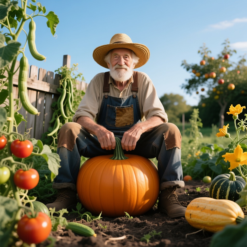 В далёкой деревне жил старый садовник по имени Харун. У него был небольшой огород на окраине, где росла всего одна тыква — большая, гладкая, с тёплой кожурой, словно впитавшей в себя всё летнее солнце. Каждый вечер садовник садился на неё, прислонившись спиной к старому дубу, и смотрел, как солнце опускается за горизонт.