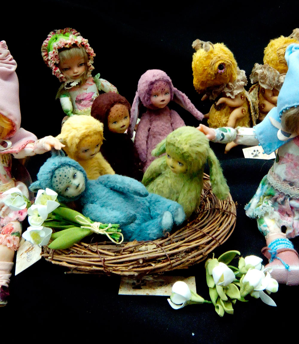 Маша стала их рассматривать. Один с голубоватым мехом и личиком того же цвета, на лбу пятнышки. Ушки кругленькие. Рядом сидел, опустив голову, «зайчонок» зеленоватый. Личико имело расстроенное выражение. Сбоку желтый, похожий внешне на голубоватого, рядом фиолетовый зайчонок и мишка.