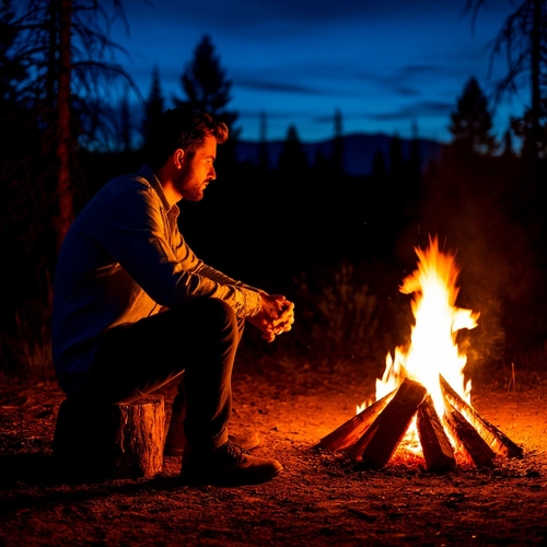 Теперь я сидел один около заброшенного старого дома, вдали от города, и смотрел на костёр, который сам развёл. Пламя трещало, выбрасывая искры