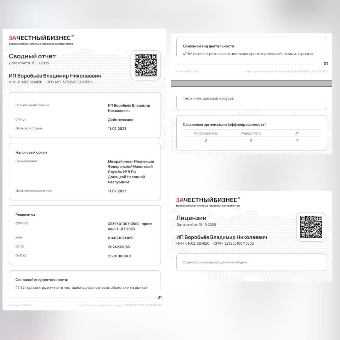 Нарушения ФЗ ИП Воробьёв Владимир Николаевич