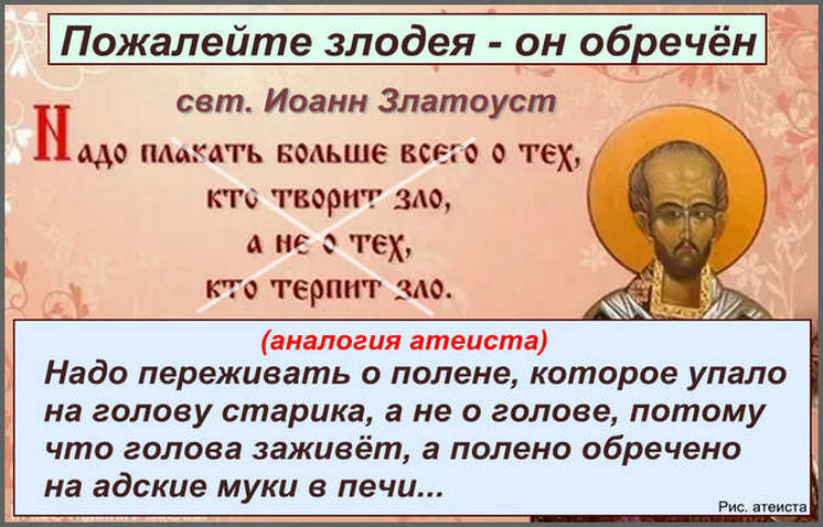 И наоборот, любой злодей для церкви и попов, это погибающая душа, которая возможно даже в Бога мало верит,