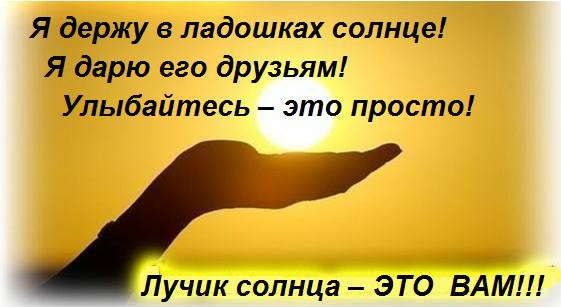 Всегда рада вам, от всего сердца желаю вам хорошего настроения, счастливых моментов в жизни человека.