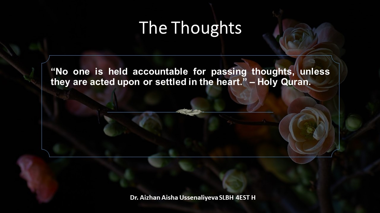 “No one is held accountable for passing thoughts, unless they are acted upon or settled in the heart.” – Holy Quran.