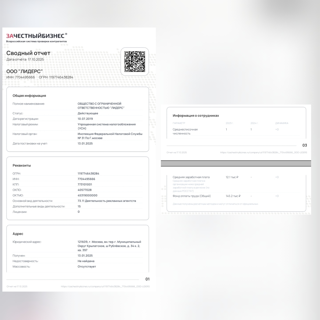 Нарушения ФЗ в ООО Лидерс, Ч. 1