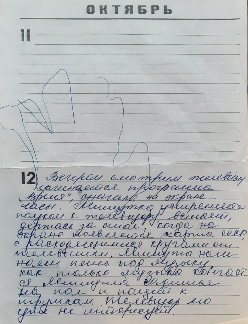 Мишутка устремляется ползком к телевизору, встаёт, держась за стол.