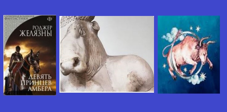 В древности жил Мастер, который умел делать такие вещи, которые никто не мог повторить. Мастер взял себе учеников и один ученик попробовал превзойти Мастера в сложном искусстве. Мастер был очень рассержен и убил своего ученика. Убийство- серьезный грех. Мастер был вынужден уйти из дома и скитаться в поисках работы. Он долго искал и его наняли создать деревянную Корову для жены царя Миноса. Жена Миноса воспылала страстью к быку, вероятно не без участия магических чар. Её звали Пасифая. От странной связи родился сын с человеческим телом и головой быка. Дедал- так называли Мастера, сделал для него лабиринт, что бы чудовище никто не увидел. Второй знак Гороскопа носит название "Телец" и имеет стихию "Земля. А в древности это был Минотавр! Видимо Дедал действительно был хорошим мастером! А Тесей, победивший Минотавра, был одним из принцев Амбера!