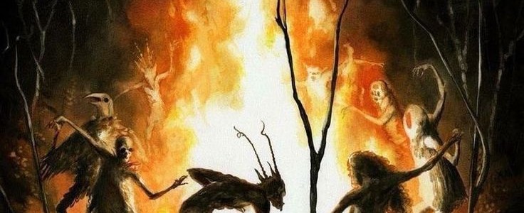 Внезапно поющие девушки усилили напор, их голоса стали громче, пронзительнее и жестче, и одна из них, стройная блондинка с волосами цвета спелой пшеницы, спадавшими на плечи, в состоянии исступленного, экстатического восторга шагнула прямо в самое сердце пламени. Оно немедленно охватило ее сочным, ярко-желтым языком, но, поразительным образом, не причинило ей никакого видимого вреда, не прервав ее дикого пения, которое лишь смешалось с мощным шипением огня, превратившись в четкие, членораздельные стоны высшей экзальтации. Это зрелище заставило путника прошептать сипло и хрипло: "Дьявольщина, ну чистый шабаш!" Он инстинктивно вжался всем телом в шершавое дерево, ожидая немедленной и страшной расплаты за свое подглядывание, но разворачивающееся перед ним празднество, казалось, поглощало все его внимание, приковывая к себе.