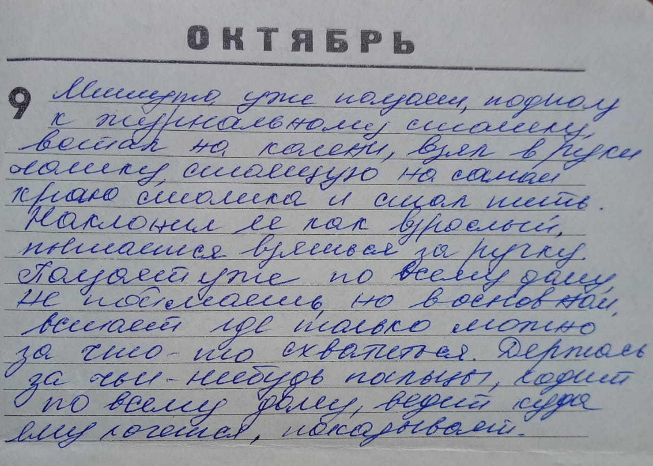 Мишута уже ползает, подполз к журнальному столику, встал на колени, взял в руки чашку, стоящую на самом краю столика и стал пить.