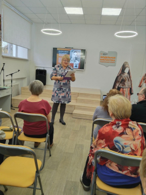 19 октября в Модельной библиотеке национальных культур (ул. Горького, 42) прошла литературная встреча, посвящённая 125 - летию со дня рождения одной из самых популярных певиц СССР Лидии Андреевны Руслановой – «Русланова Лидия Андреевна – Песенный символ России». Подготовила и провела встречу главный библиотекарь Светлана Евгеньевна Плотникова, рассказала о судьбе и творчестве простой крестьянки, голос которой никогда не смолкал, даже в самые тяжёлые времена, о детстве и юности, о трудных годах жизни певицы, о её жизнерадостности и неповторимости. Выступление сопровождалось фото и видеоматериалом – гости посмотрели записи выступления Лидии Руслановой: «Валенки, валенки», «Окрасился месяц багрянцем…», «Весной Волга разольётся». Порадовала гостей автор – исполнитель Любовь Дёмушкина – исполнила песни под гитару. Выступили поэты: Венера Измайлова, Ирина Шумахер, Надежда Стукалюк со своими стихами и любимых авторов. Песню и стихи исполнила читатель библиотеки Людмила Якушева. Самарское региональное отделение Российского союза писателей приняло участие в программе – Роман Полуэктов прочитал свои стихи, рассказал о союзе писателей, представил вниманию книгу Российского союза писателей «Регионы».