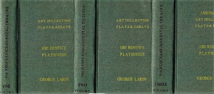Драматург nla.au/nla.cat- 611 c. TOM - 2: 2023 GEORGE LARIN: URI RUNTU'S PLAYHOUSE: critical reviews: AUSTRALIA: THE NEOTRANSCENDENTAL THEATRE: ART COLLECTION: 6 - 10 PLAYS: 1-20 ESSAYS: 1-st Edition: Hardcover: ISBN 978-1-92527-83-7-8: French: English: Russian: volume 2: 1- 613 pages: Published Canberra ACT Australia: NLA ID 8855253