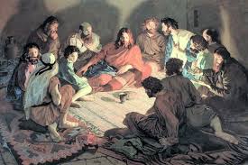 Во время бегства из Египта израильтяне ели пасху стоя — препоясанные, с посохами в руках, готовые отправиться в путь. Сама форма совершения этого обряда соответствовала условиям, в которых они находились, — они готовились оставить землю египетскую и начать мучительное и трудное странствие по пустыне. Но во времена Христа положение изменилось. Теперь иудеям не надо было уходить из чужой земли, потому что они жили на своей собственной. Им был дарован покой, поэтому люди участвовали в Пасхальной Вечере полулежа. Около стола были устроены места для возлежания, и гости располагались на них, опираясь на левую руку, а правой брали пищу. Гость мог положить голову на грудь того, кто был рядом с ним. Ноги гостей можно было омыть, обойдя возлежавших.