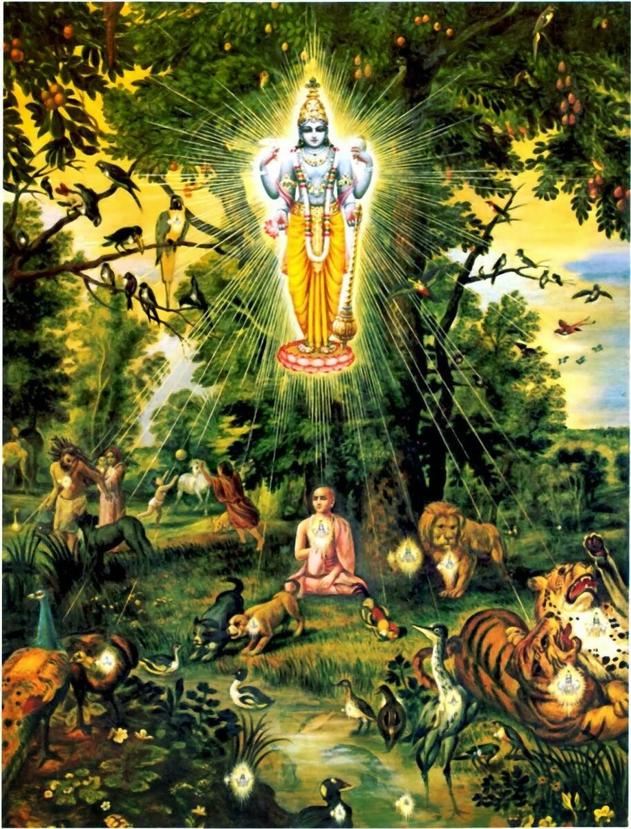 Как гуру может видеть ученика? Как он может направлять его изнутри сердца? Здесь есть третье лицо – Сверхдуша в сердце, то есть Бог в сердце у того и у другого. Например, вы переезжаете границу на поезде, а там ищут наркотики. Пограничные службы обязаны смотреть, чтобы ничего запрещённого не было провезено. И в этом случае кто-то из офицеров состава ведёт специально обученную собаку. У неё есть нюх и она ищет. Гуру действует точно также. Он даёт Бога ученику, и Бог в его сердце проясняется. Потом изнутри сердца учитель получает информацию об ученике от Сверхдуши. Без Сверхдуши не существует понятия «гуру-ученик». Если там нет Бога – это не гуру и это не ученик, это отражение, прообраз того и другого. Как, например, в школе о Боге не говорят – там будут учить азбуке, математике. Это тоже хорошие отношения учителя и ученика, но там нет связующего звена на всю жизнь, нет такой ответственности, чтобы учитель отвечал за этого ученика, пока не приведет его к совершенству. Учитель в школе просто дает школьную программу и забывает об ученике. Но у духовного учителя эта ответственность не кончается даже после ухода духовного учителя и смерти ученика.